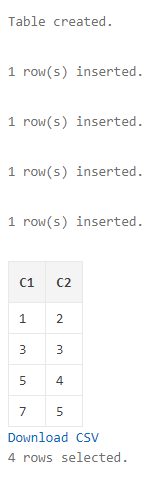 첫 번째줄에는 테이블이 생성됐고 다음으로는 4개의 row가 삽입됐습니다.