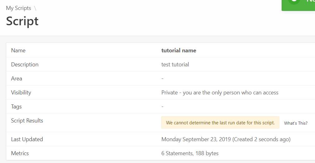- Script Name에 본인이 진행한 튜토리얼의 이름을 마음대로 적습니다.