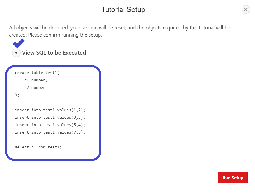 밑에 보이는 빨간색 Run Setup 버튼은 테이블을 생성하고 값을 넣어주는 작업만 진행 해주기 때문에 전체를 실행하지 않습니다.