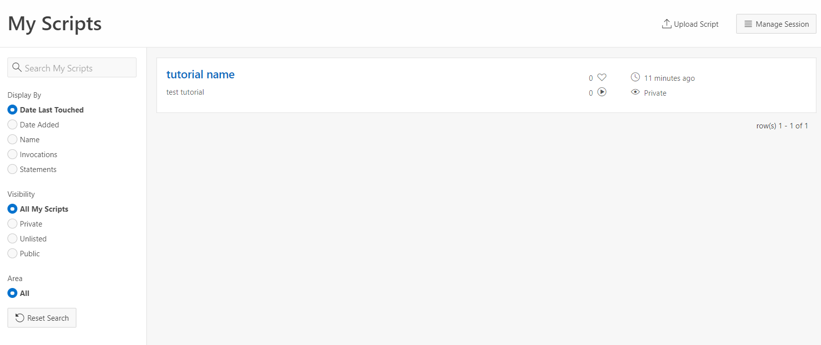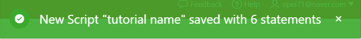 저장한 스크립트를 확인하거나 다시 실행해보고 싶으면 My Script를 이용하면 됩니다. My Script를 들어간 뒤 원하는 튜토리얼을 클릭합니다.